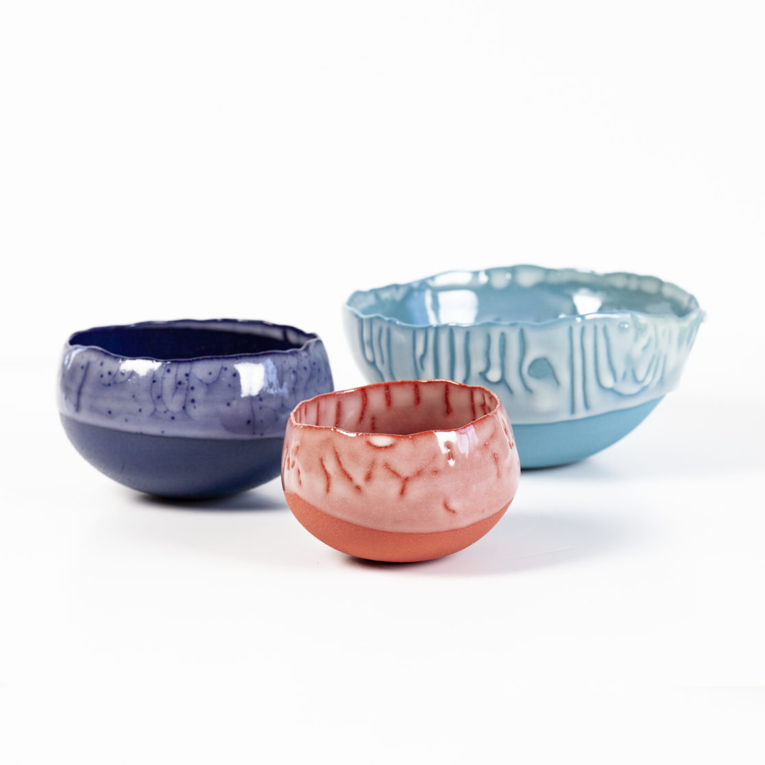 Après une deuxième cuisson, je recouvre partiellement mes pièces d’un émail fait maison, tel une seconde peau.